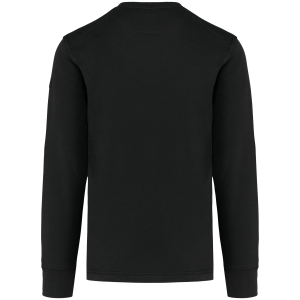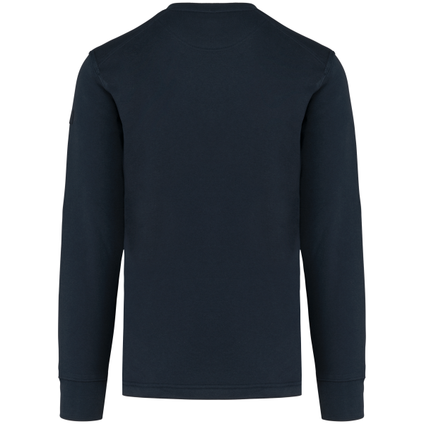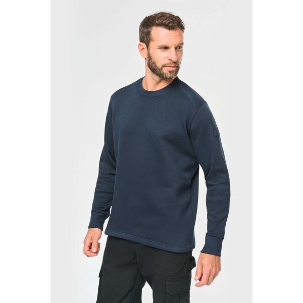 80% katoen / 20% polyester. Fleece 3 draden met LSF-behandeling (Low Shrinkage Fleece). Wasbaar op 60 °C. Ronde hals en mouwuiteinden in ribboord. Onzichtbare ritszak rechterzijkant. Versteviging op de schouders en ellebogen. Penhouder op de linkermouw. Halvemaanvormige afwerking op de achterkant. Ophanglus in de kraag. Afwerking met dubbel stiksel onderaan en verlengd achterpand voor meer comfort.